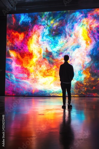 Artist Standing in Front of Colorful Painting