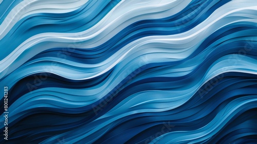 Artistic abstract image with layered wavy patterns in various shades of blue, illustrating fluidity, motion, and modern design elements.
