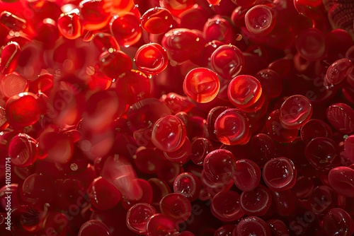 Artistic macro view of red cells encapsulating covid-19 virus particle