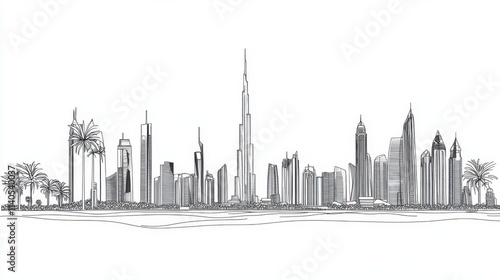 Artistic representation of Dubai's landmarks in one stroke