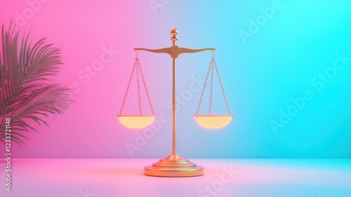 Artistic representation of justice scales on colorful background.