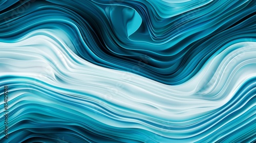 Artistic seamless wave patterns in gouache, blending rich shades of blue and turquoise, creating a fluid, rhythmic design perfect for tiles and wallpapers