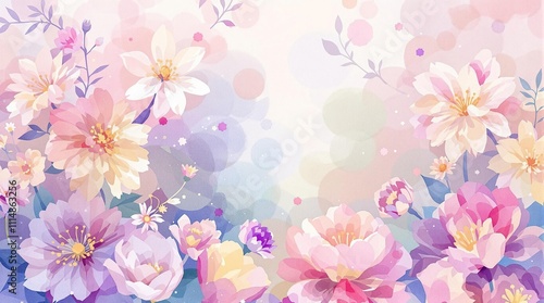 Artistic watercolor illustration of blooming flowers, botanical, colorful
