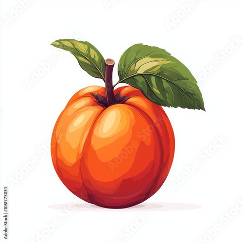 artwork showcases vibrant orange persimmon smooth shape and small green leaf top emphasizing minimalist and modern aesthetic plain background.