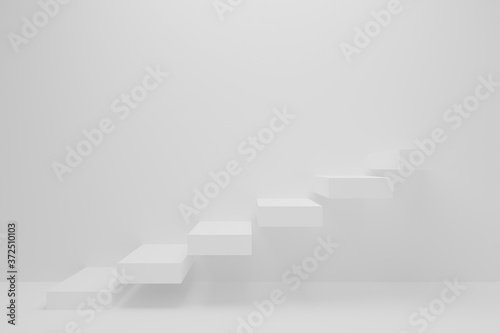 Ascending white stairs of rising staircase going upward in white empty room, growth and successful concept. 3d rendering