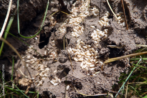Aschgraue Sklavenameise mit Eiern