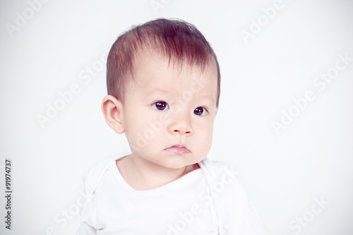 Asian baby girl smiling, studio shot (soft focus on the eyes)