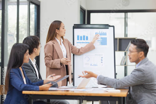 Asian business teamwork working with analysis report and advisor showing plan, Financial analysis and Marketing teamwork concept.