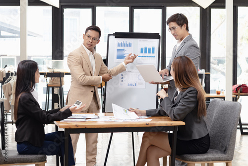 Asian business teamwork working with analysis report and advisor showing plan, Financial analysis and Marketing teamwork concept.