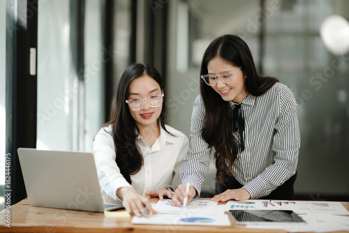 Asian businesswoman uses tablet to hold a meeting, discuss and exchange knowledge.