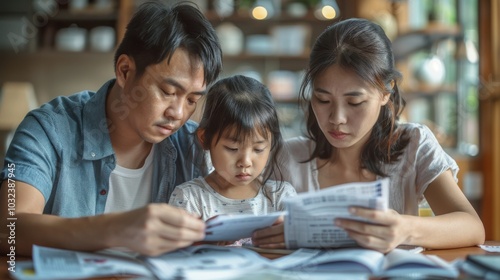 Asian family feeling the impact of rising living expenses, with bills and debt piling up