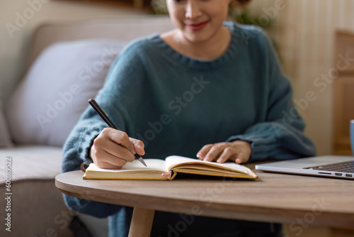 Asian girl student online learning class study online video call zoom teacher, Happy asian girl learn english language online with computer laptop..