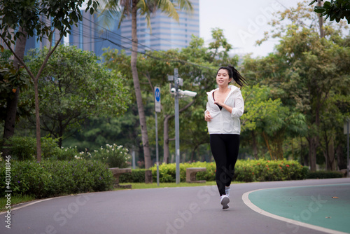 Asian woman is warm up, To make the muscles flexible Before going to jogging for good health and energy metabolism,Outdoors cross training workout. Healthcare concept