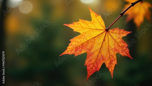 Aspen leaf clinging to pine branch, autumn colors, image, image