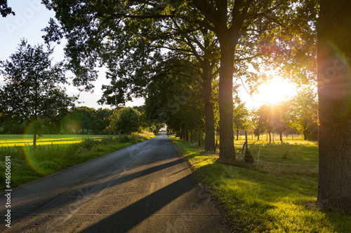 Asphaltierer Weg in einer Ortschaft in Abendstimmung