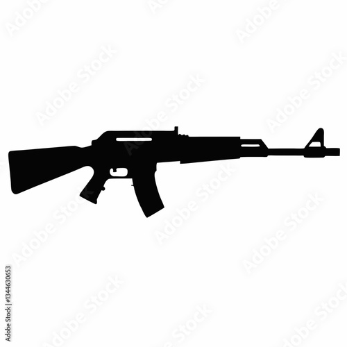 Assault rifle vector illustration isolated on white background showing a black automatic weapon with a sleek design, suitable for military or army-themed graphics