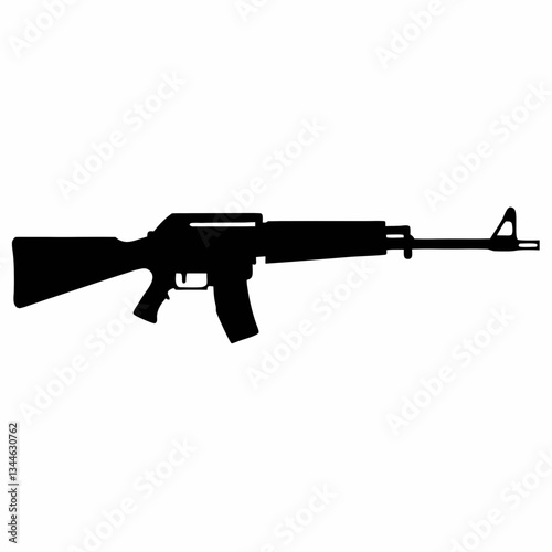 Assault rifle vector illustration isolated on white background showing a black automatic weapon with a sleek design, suitable for military or army-themed graphics