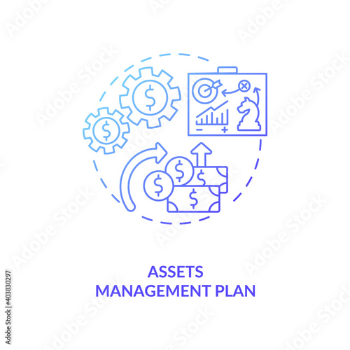 Assets management plan concept icon. AM benefit idea thin line illustration. Calculating life-cycle costs. Delivering agreed service standard. Vector isolated outline RGB color drawing