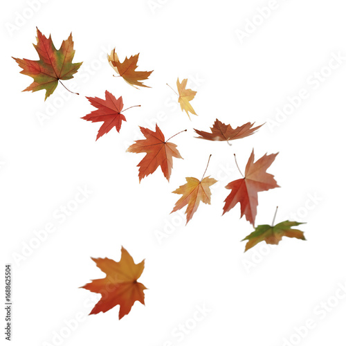 Assorted autumn maple leaves scattered with transparent background and abstract lines isolated on a transparent background