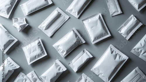 Assorted bubble mailers with textured surface arranged on a white background for shipping and logistics