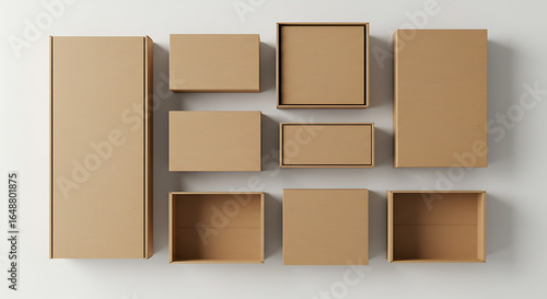 Assorted Cardboard Box Collection Lay Flat on White Background for Mockup.