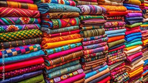 Assorted Colorful Fabrics and Textiles Displayed in a Neatly Stacked Arrangement for Design Use