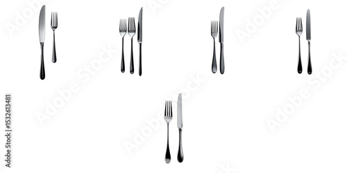 Assorted cutlery including forks and knives arranged on a transparent background featuring a high-quality top view composition suitable for culinary or restaurant themes.