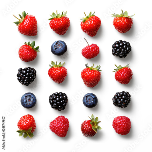 Assorted Fresh Berries Arranged in Neat Rows Isolated Transparent