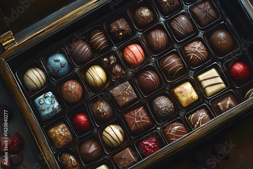 Assorted Gourmet Chocolates in Luxury Box with Varied Flavors and Textures
