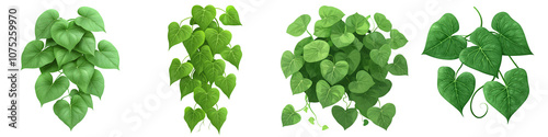 Assorted green leaves arranged in various clusters on a white isolated background. transparent background