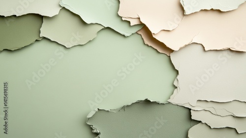 Assorted green paper pieces in various shapes. Torn details and pastel tones perfect for craft or collage visuals