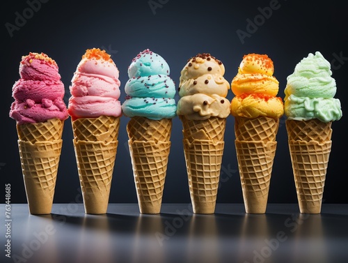 Assorted Ice Cream Cones in Row