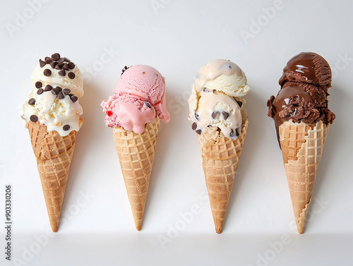 Assorted Ice Cream Cones with Vanilla, Chocolate, and Strawberry Flavors