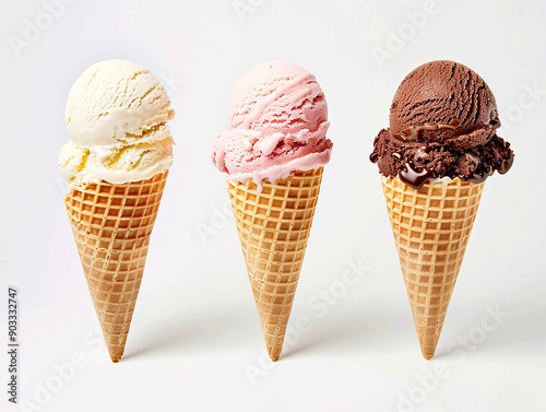Assorted Ice Cream Cones with Vanilla, Chocolate, and Strawberry Flavors