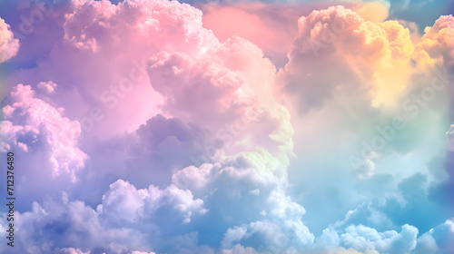 Assorted intensely iridescent rainbow-chromed clouds. Horizontal background. High quality