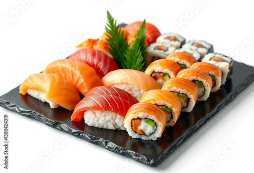 Assorted Nigiri and Maki Sushi Platter with Fresh Fish and Vegetables