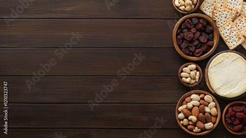Assorted nuts and dried fruits on a wooden table