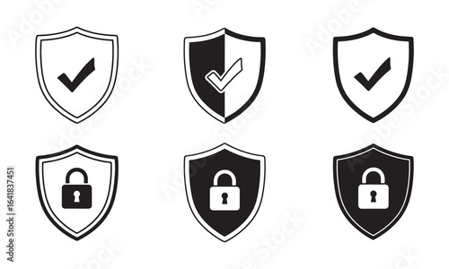 Assorted security shield icons with checkmarks and padlocks for website protection