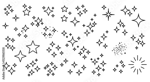 Assorted star shapes and sparkles in black and white illustration design vector illustration