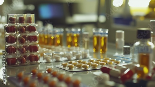 Assortment of Medicine and Pharmaceutical Products on a Laboratory Table