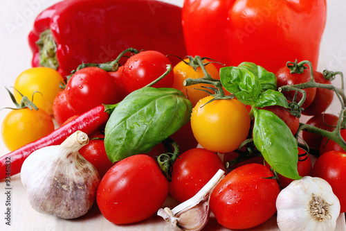 Assortment of tomatoes and vegetables