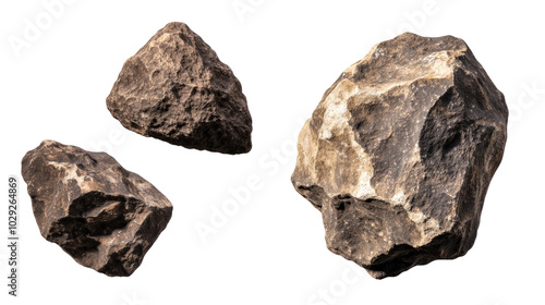 Asteroid Swarms as Rocky Meteorites on White Background Generative AI