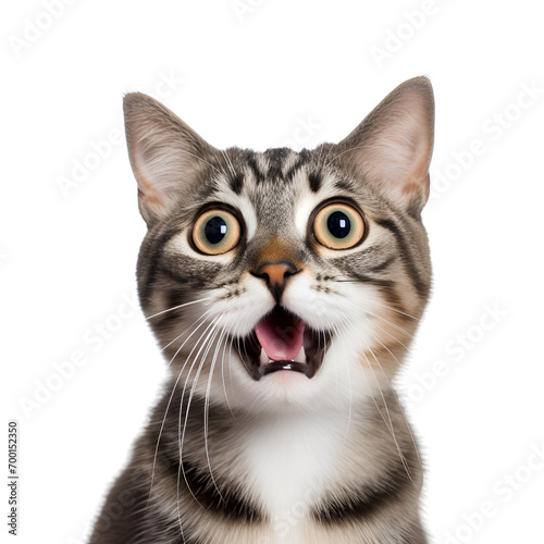 Astonished cat with big eyes gives a close-up of its crazy surprise, Isolated on Transparent Background, PNG
