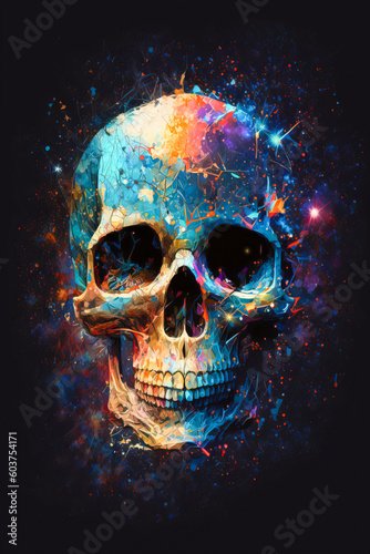 Astral Enigma: Kaleidoscopic Skull Awash in Cosmic Decor created with Generative AI technology
