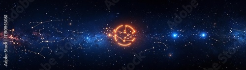 Astrological Leo symbol glowing amidst a cosmic array of bright stars and constellations
