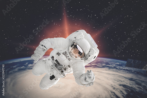 Astronaut and sunrise. The elements of this image furnished by NASA.