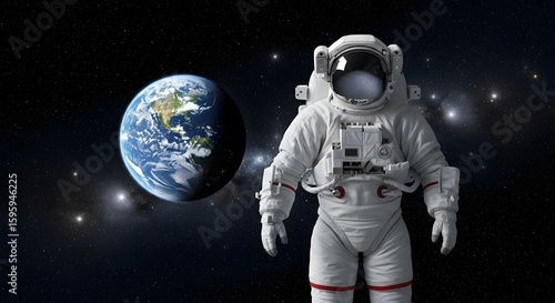 Astronaut Gazing at Earth in the Vastness of Space, Stellar Background