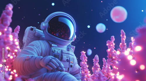 Astronaut in Bioluminescent Alien Flora: 3D Render