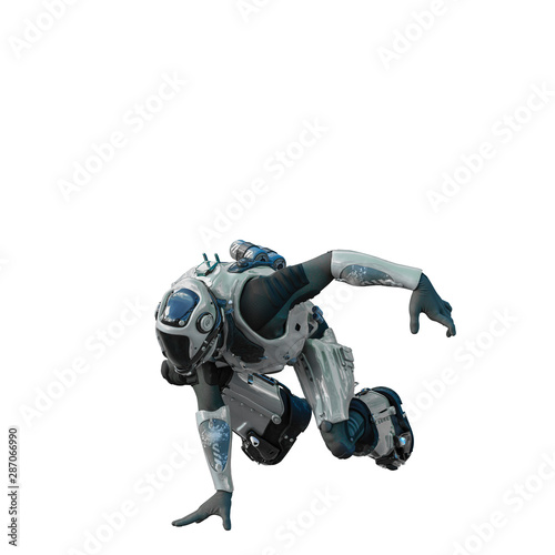 astronaut in gray exo suit exploring arround