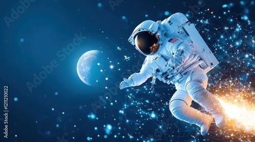 Astronaut riding a rocket outer space digital art cosmic environment dynamic viewpoint adventure concept for enthusiasts